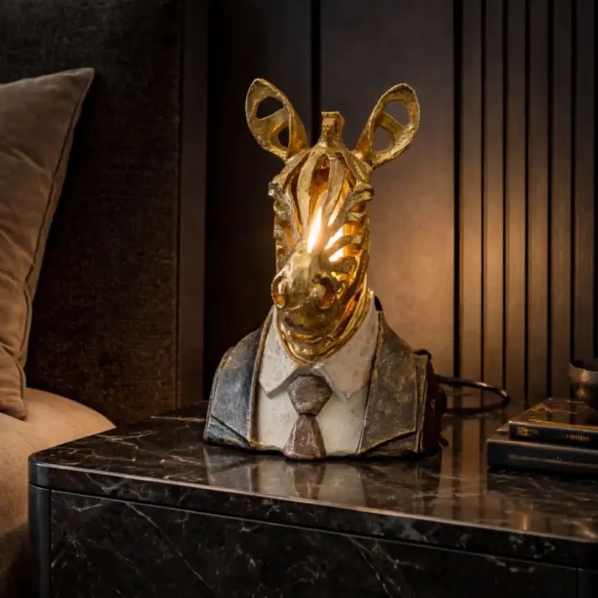 Baron Stripes Sculptural Zebra Table Lamp | Designer Table Lamp