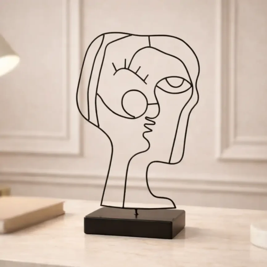 The Quiet Oracle | Modern Abstract Bust Sculpture with Gold Accent